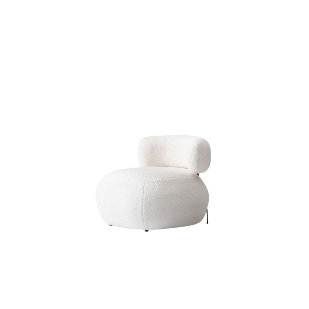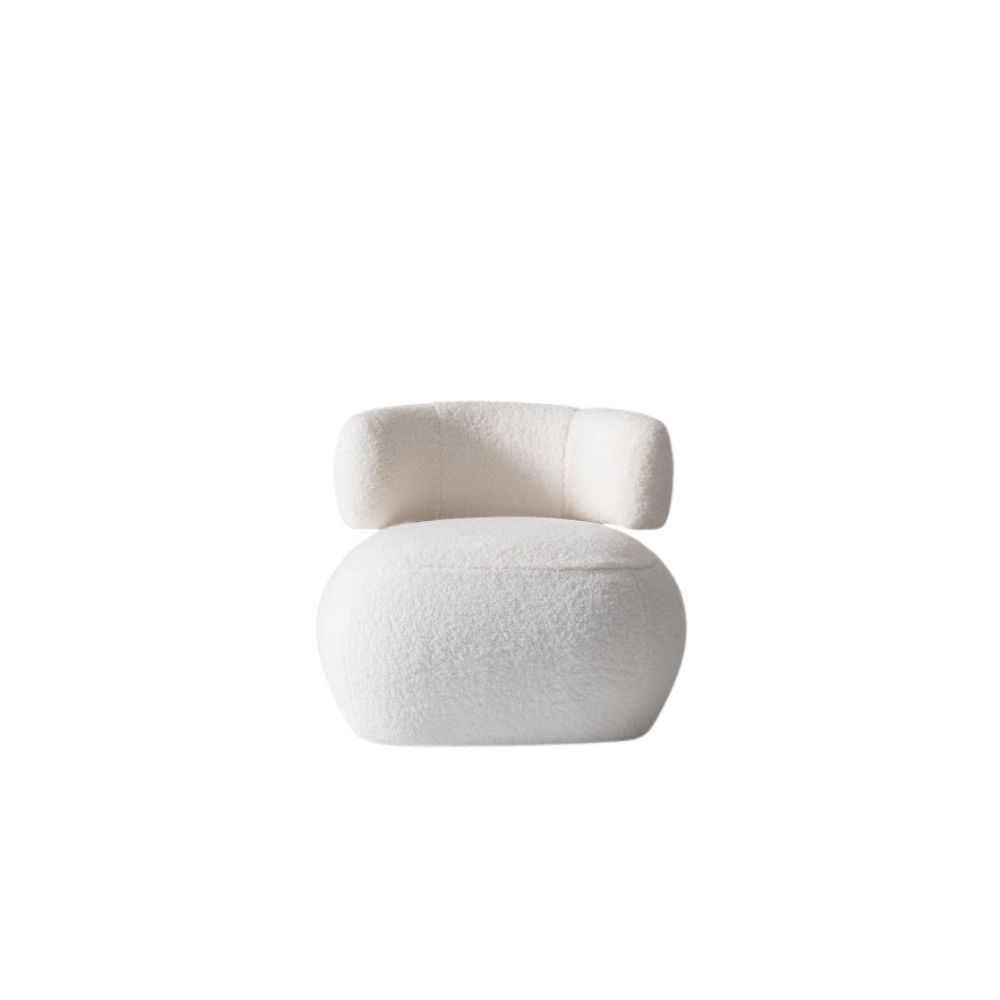 Romeo Berjer, yuvarlak formu ve yumuşak dokulu kumaşıyla modern salon dekorasyonuna sade, konforlu ve dikkat çekici bir şıklık katar.